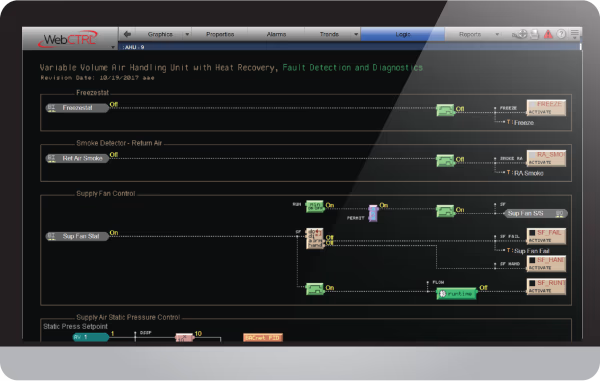 Independientemente de la estrategia, un edificio inteligente comienza con controles inteligentes. Nuestros controladores HVAC generan y agregan datos sobre las condiciones relacionadas con el funcionamiento del equipo y el consumo de energía, y luego comparten esa información con nuestro software WebCTRL para que siempre sepa lo que sucede en sus instalaciones.