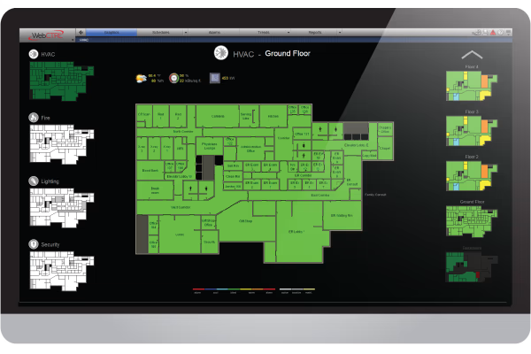 La eficiencia del edificio comienza con la consolidación de todas sus instalaciones, sistemas y equipos para una mejor visibilidad y un mayor control. Nuestras soluciones ayudan a conectar los puntos para permitir la administración centralizada desde una única interfaz de usuario. Eso se traduce en un edificio más inteligente con un flujo de información mejorado entre los sistemas, un uso de energía más eficiente y más oportunidades para la automatización.