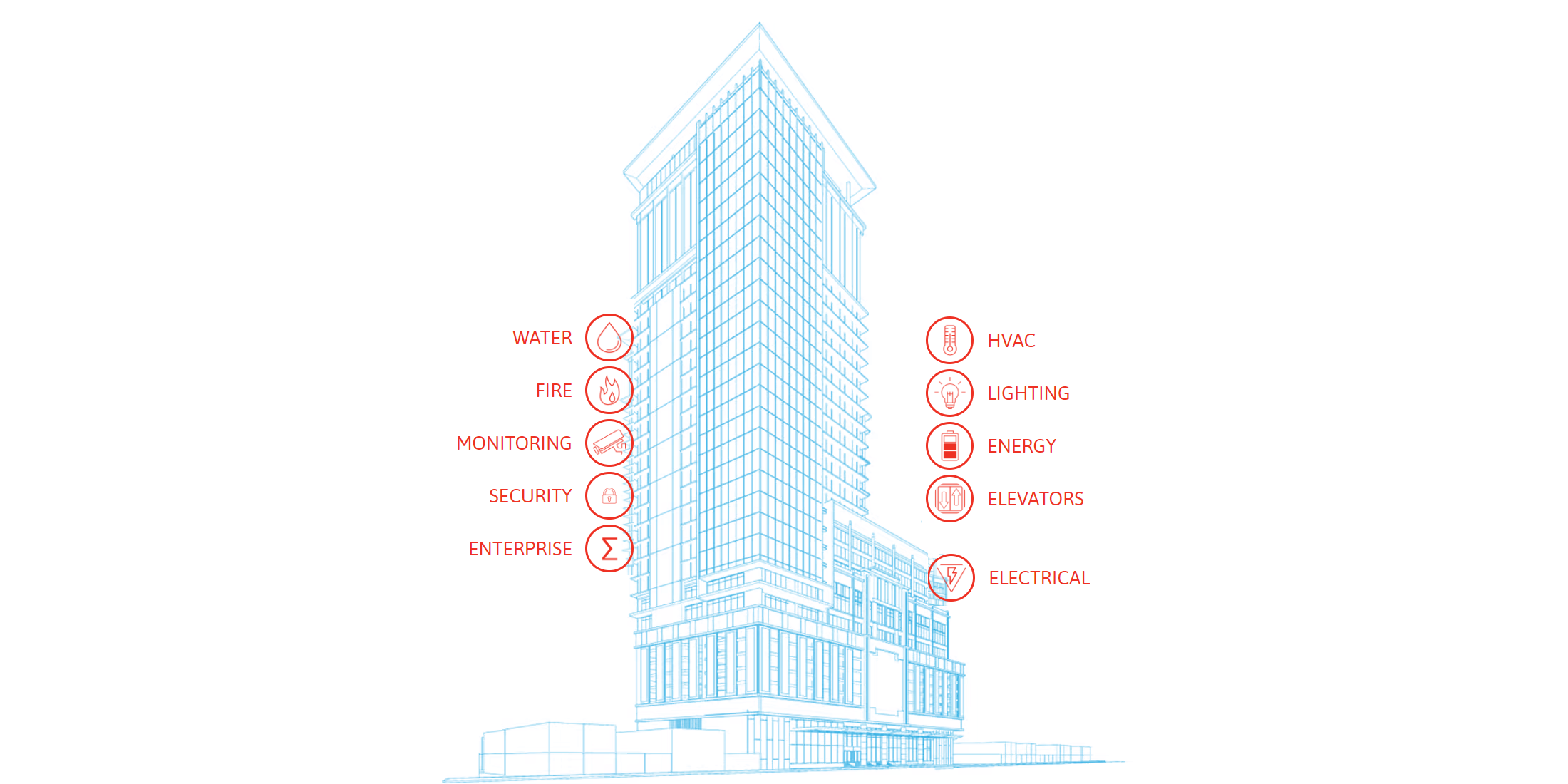 La eficiencia del edificio comienza con la consolidación de todas sus instalaciones, sistemas y equipos para una mejor visibilidad y un mayor control. Nuestras soluciones ayudan a conectar los puntos para permitir la administración centralizada desde una única interfaz de usuario. Eso se traduce en un edificio más inteligente con un flujo de información mejorado entre los sistemas, un uso de energía más eficiente y más oportunidades para la automatización.